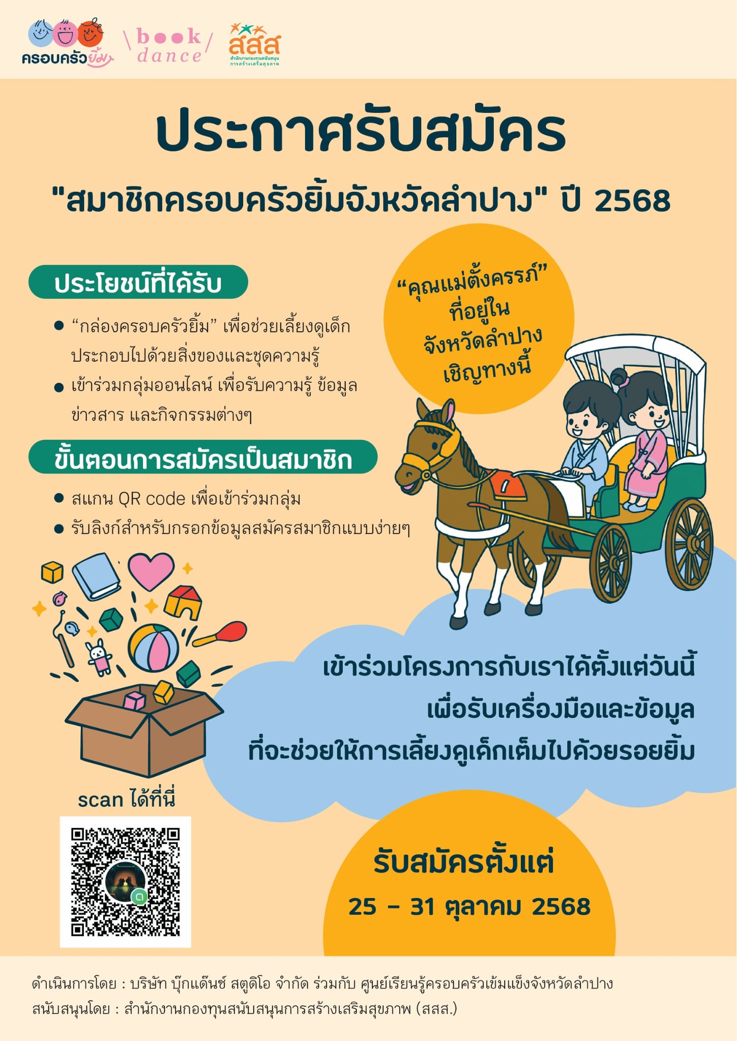 ชื่อเรื่อง : การรับสมัคร "สมาชิกครอบครัวยิ้มจังหวัดลำปาง" ปี 2568